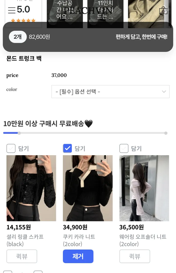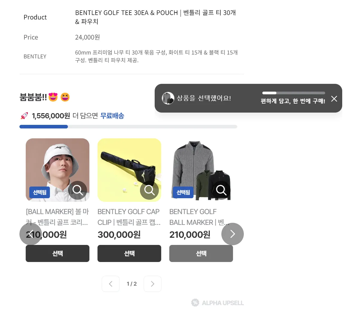 알파업셀의 위젯 내에서 상품을 추가로 담았을 때, 무료 배송과 같은 혜택 CTA를 노출 시켜 추가 구매를 유도해요