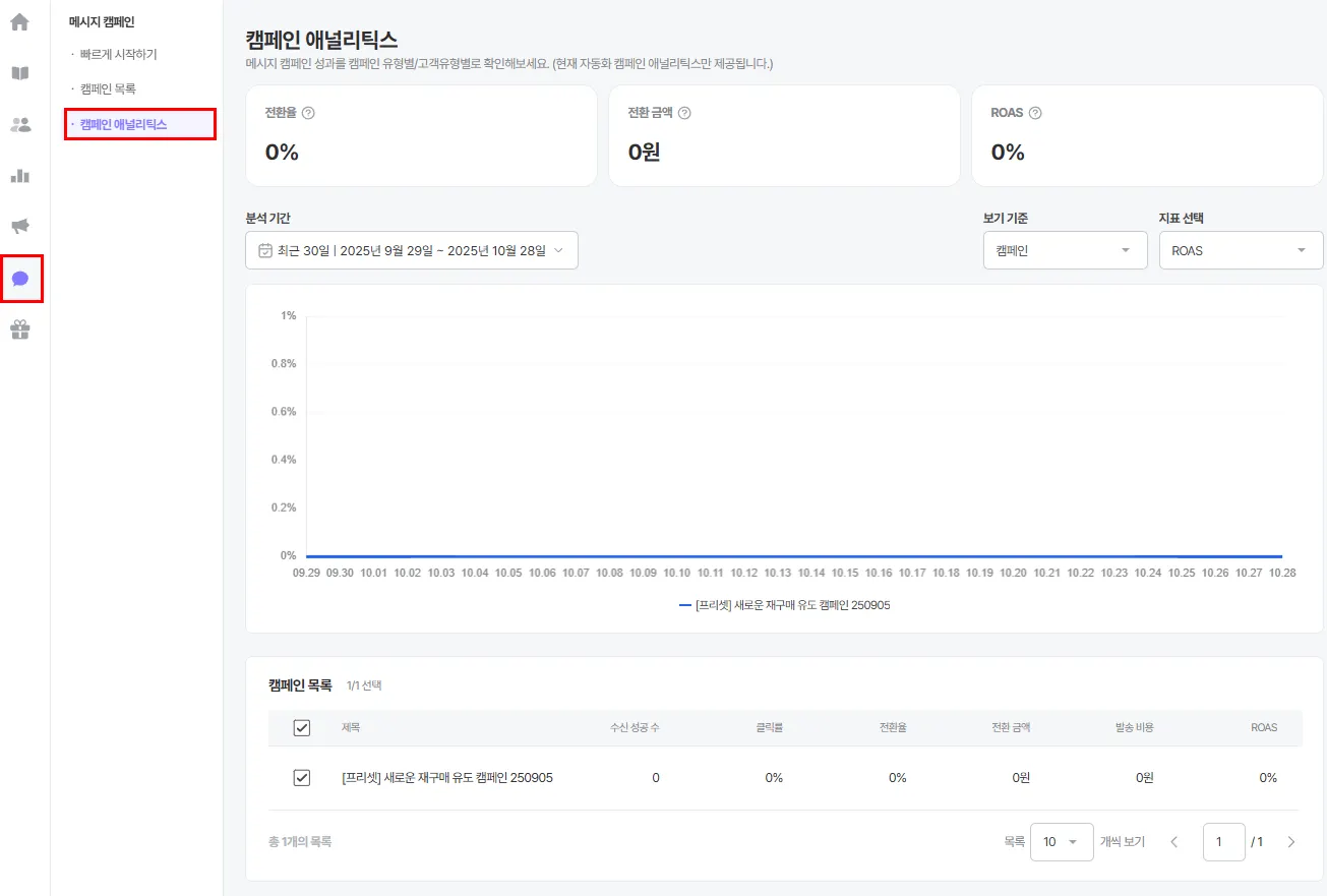 접속경로: [메세지 캠페인> 캠페인 애널리틱스]