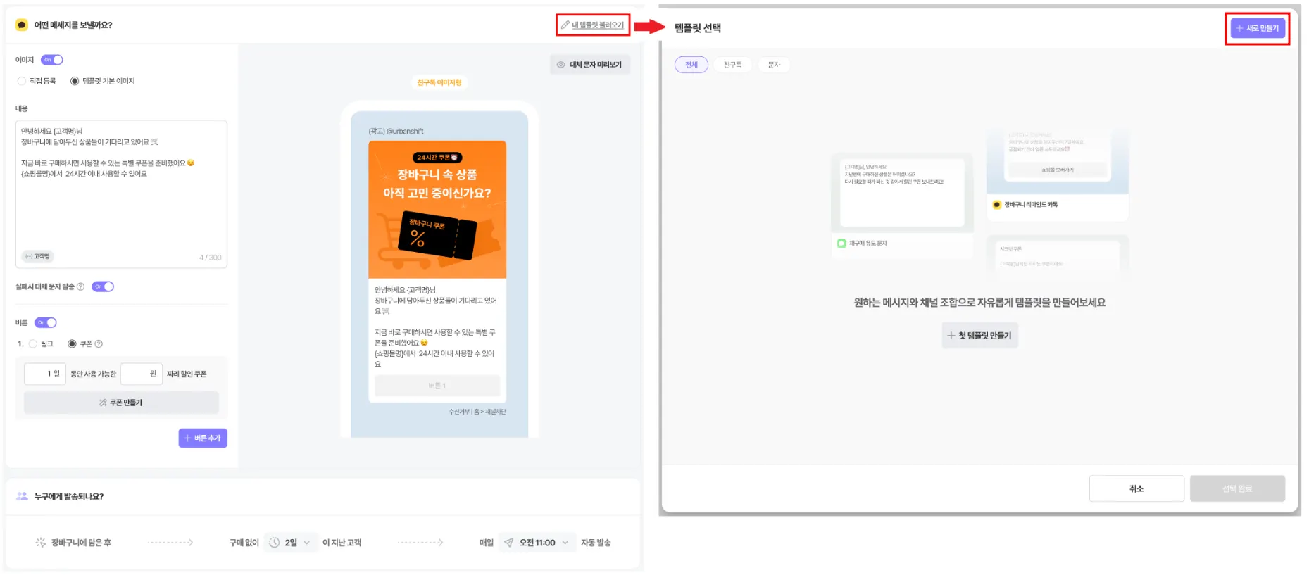 접속경로:[캠페인 목록>캠페인 만들기>캠페인 선택>내 템플릿 불러오기]