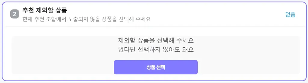카테고리 전체를 추천 상품으로 선택한 경우 특정 상품들은 제외 되도록 설정 할 수 있어요