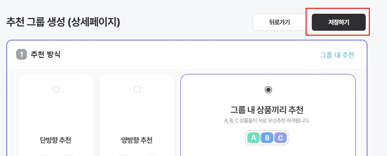 따라서 AI 추천을 쓰고 싶지 않다면, 판매 중인 모든 상품 또는 카테고리에 대해 추천 그룹을 만들어주셔야 해요!
