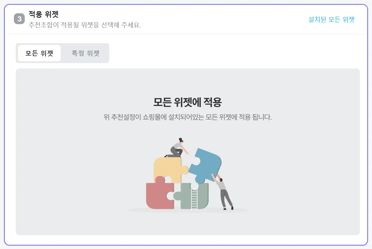 추천 그룹을 적용 할 위젯을 선택 해주세요