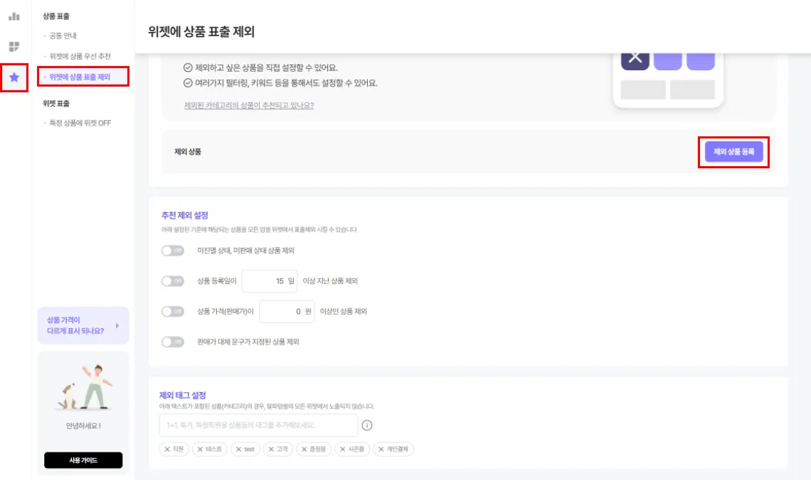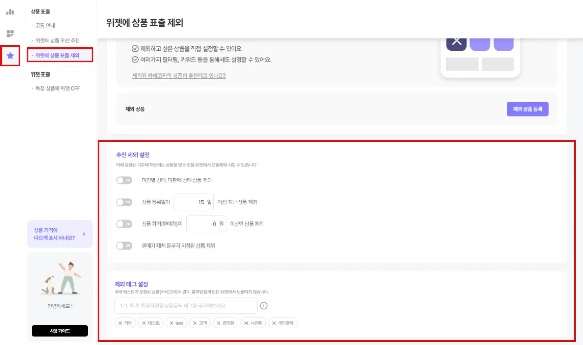 상품/카테고리 기준 추천 제외 설정 방법