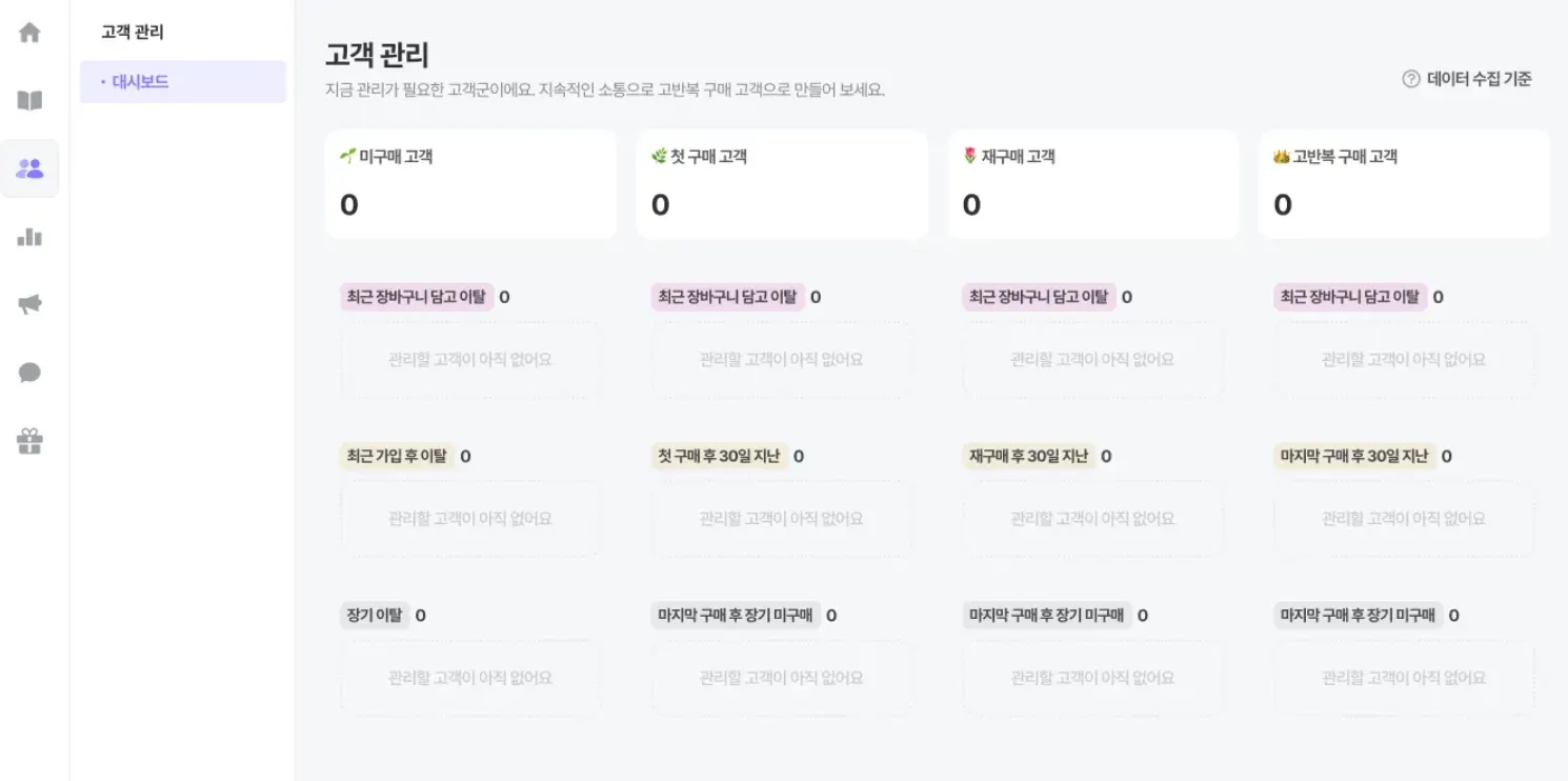 고객 관리 화면에 표시되는 고객 수는 데이터 수집 시점과 회원 데이터 이관 여부에 따라 실제와 차이가 있을 수 있어요!